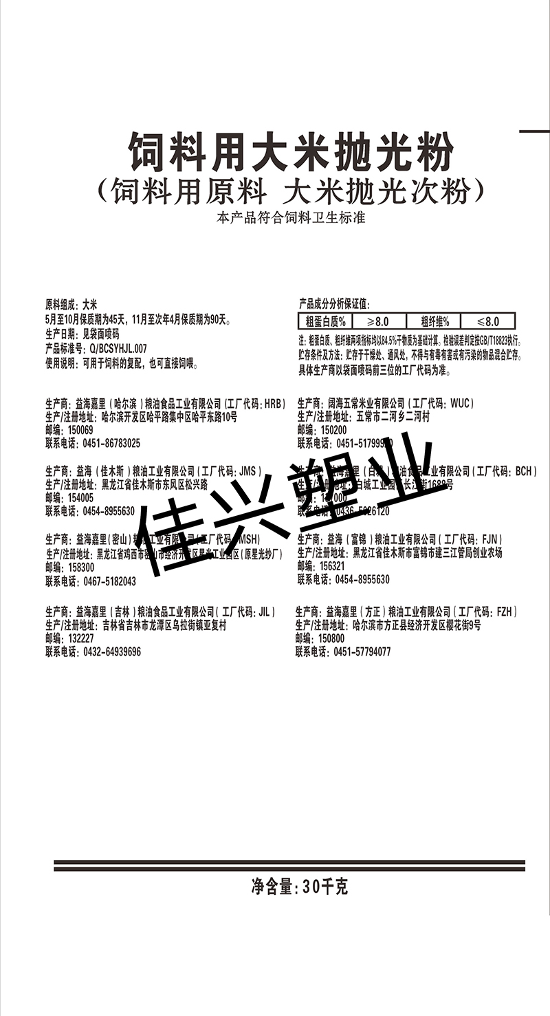 飼料用大米拋光粉30kg編織袋