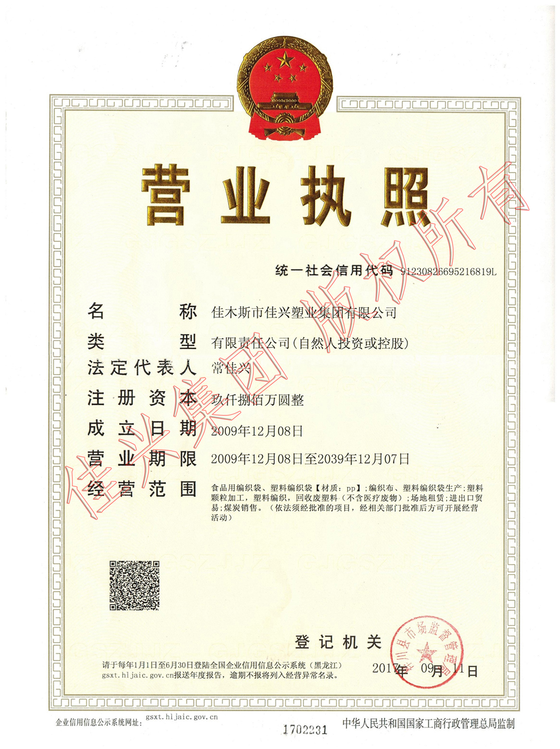 您現(xiàn)在所在位置:佳木斯市佳興塑業(yè)集團(tuán)有限公司 >> 公司資質(zhì)